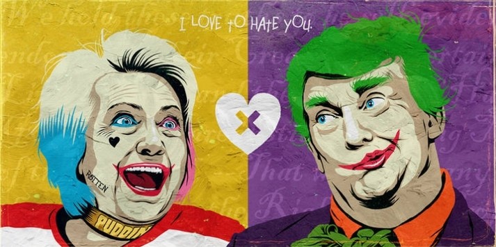 В проекте "Мясника Билли" «Trump X Hillary: I Love to Hate You» встретились такие знаменитые дуэты, как: Спанч Боб и Патрик, Джокер и Харли Квинн, Дарт Вейдер и принцесса Лея.