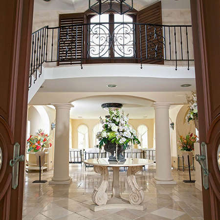 Поместье Трампов состоит из основной виллы с видом на океан, которая имеет пять спален, собственную кухню и гостиную, и второй виллы с четырьмя спальнями, кухней, офисом и гостиной. Также на территории есть гостевой дом с двумя спальнями, собственная кухня, гостиная и офис. На территории поместья располагаются два открытых бассейна, несколько теннисных кортов, тренажерный зал и бар на открытом воздухе.