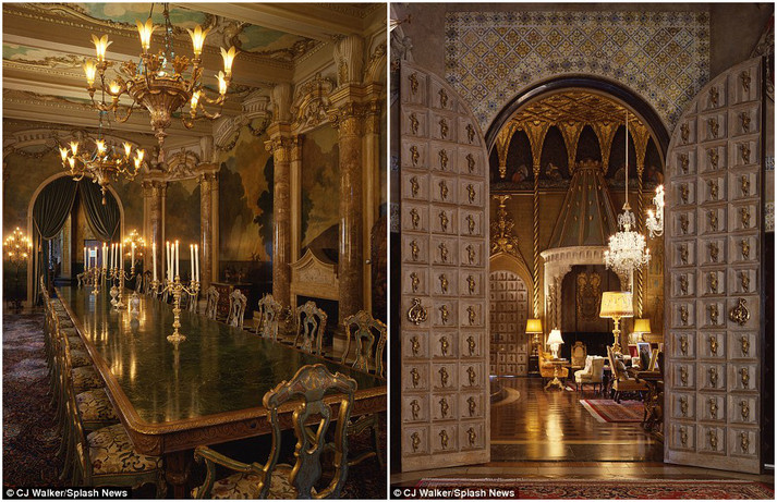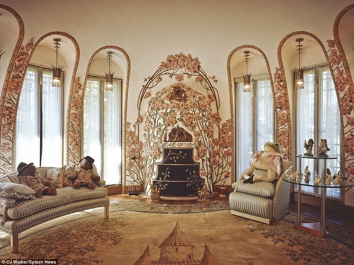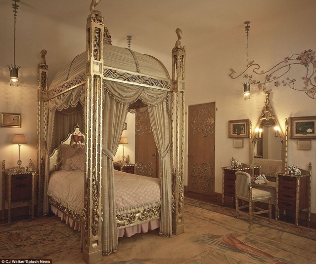 Обстановку дома буквально собирали по кусочкам со всего мира, а роспись стен выполнена маслом. Неудивительно, что при таком королевском убранстве в особняке целых четыре кровати с балдахином! Кстати, многие мотивы интерьера позаимствованы из испанского стиля.