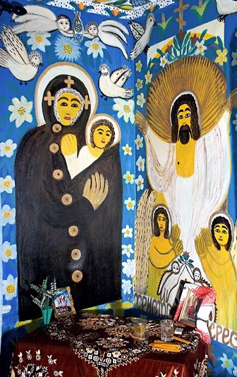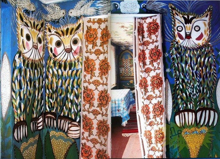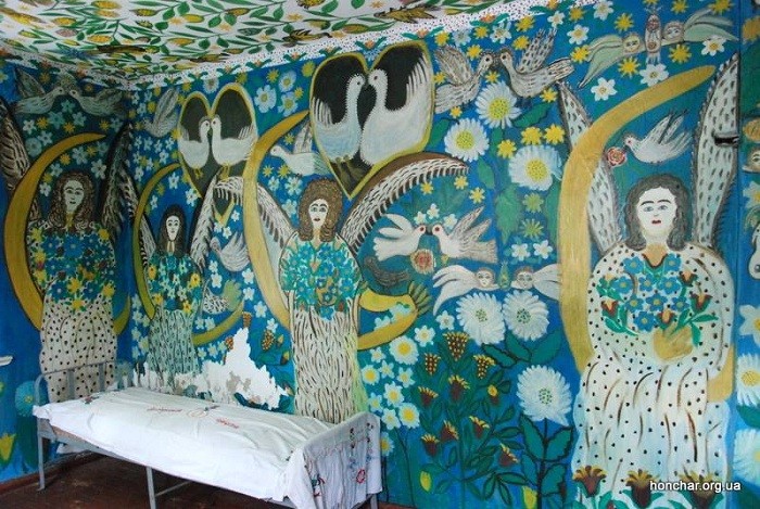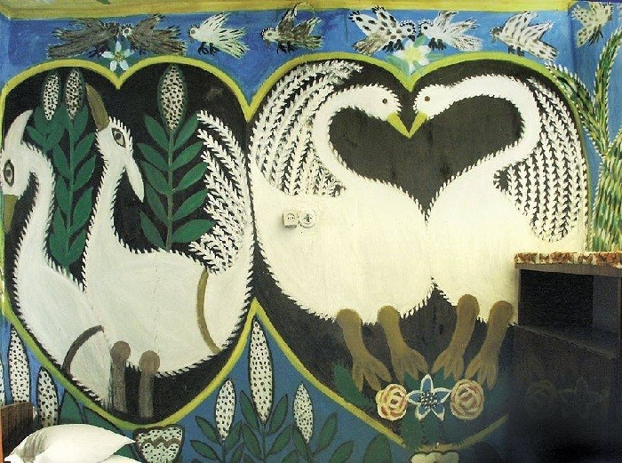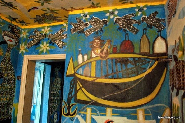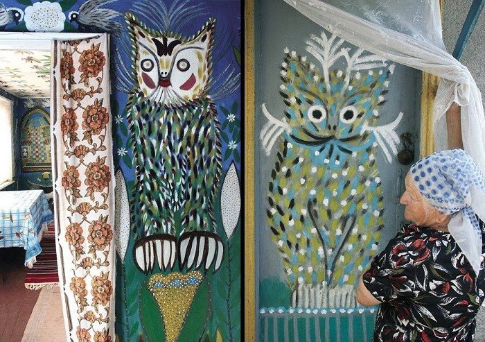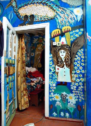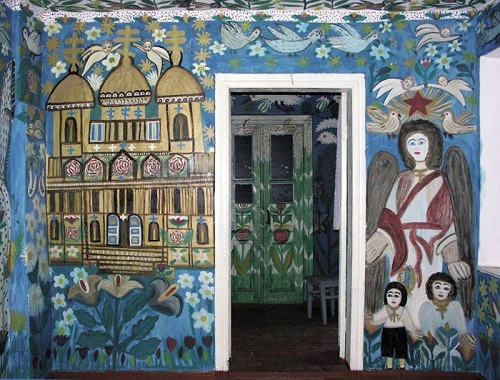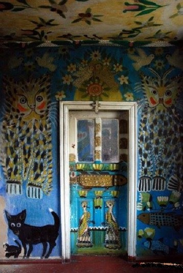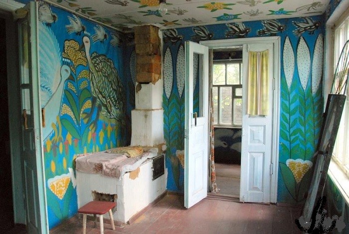 Первые живописные композиции на стенах дома Полины Райко появились, когда Сергей отбывал срок в исправительной колонии. Оставшись одна, одинокая женщина решила привести в порядок разгромленный дом. «Все равно нужно было подмазывать и подкрашивать стены, - вспоминала Полина Андреевна, - вот и думаю, дай-ка попробую что-нибудь нарисую, что б душе было веселее».