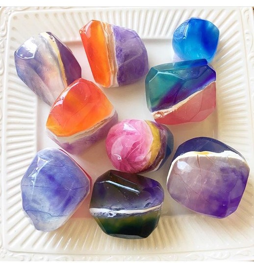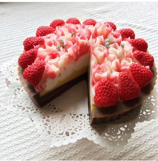 Мыло ручной работы, которое делает японка, просто поражает воображение. Ломтики тортов, ягоды, фрукты, кристаллы и драгоценные камни Киношита создает из мыльной основы и красителей. Конечно, японка не может обойтись без еще двух необходимых атрибутов: желание творить и истинного таланта.