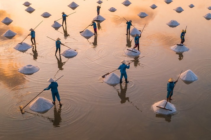 Первое место получила работа под названием «Голодные бегемоты». Автор снимка запечатлел животных с небольшой высоты во время поездки в Танзанию. На втором месте кадр, сделанный в Центральном Вьетнаме. Изначально целью фотографа была деревня по разведению омаров, но, увидев неподалёку рыбацкую лодку с огромной рыболовной сетью, он нашёл свою композицию. Третье место отдали снимку, сделанному на побережье Чёрного моря в Одессе. Кадр примечателен силуэтами, прогуливающихся по пляжу людей с собаками.