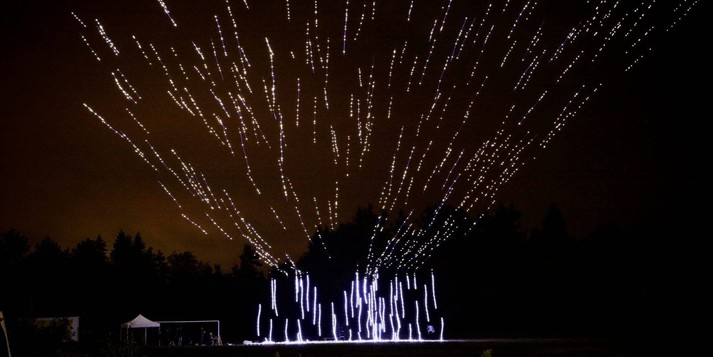 Intel уже несколько лет помогает в организации синхронных полетов беспилотников. В 2016 году компания запустила 100 дронов во время исполнения симфонии Бетховена. Позже компания организовала полет с использованием 500 квадрокоптеров.