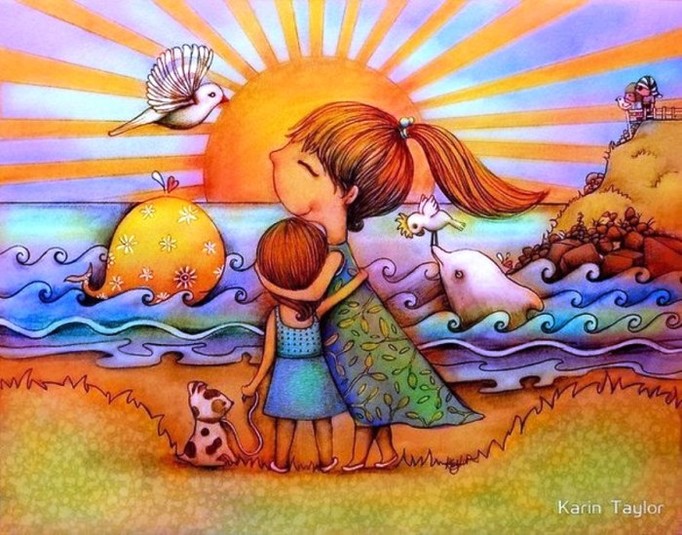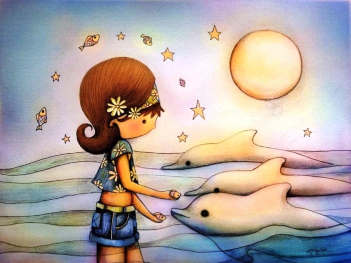 Вдохновлённая общением с собственными дочерьми и видом океана, она создаёт очаровательные рисунки, пропитанные душевным теплом, светом, гармонией, добром и позитивом.