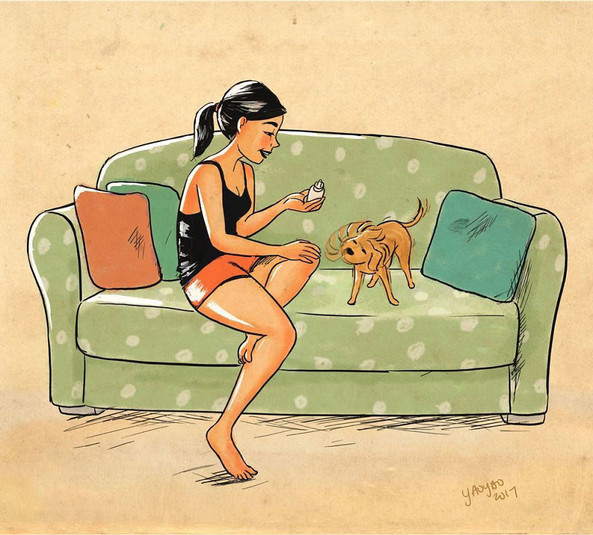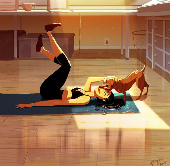 Она создала серию волшебных рисунков, на которых показала, как проводит время девушка, живущая в компании пса. Оказывается, у нее совсем нет поводов для печали, зато для искренних улыбок - предостаточно.