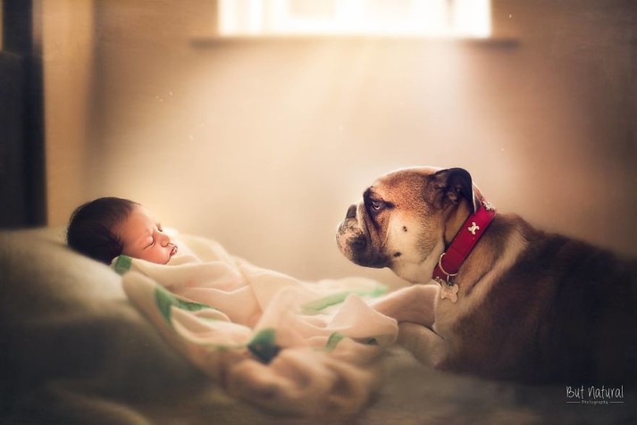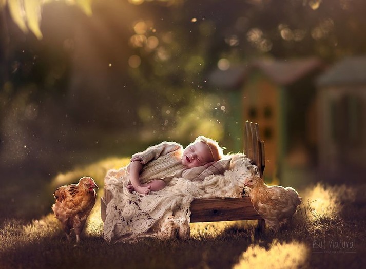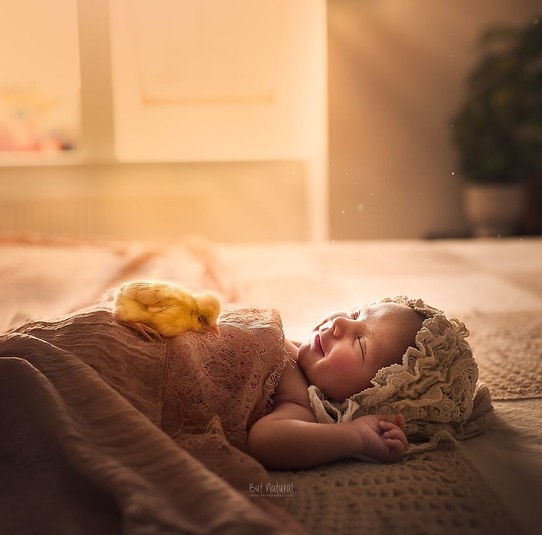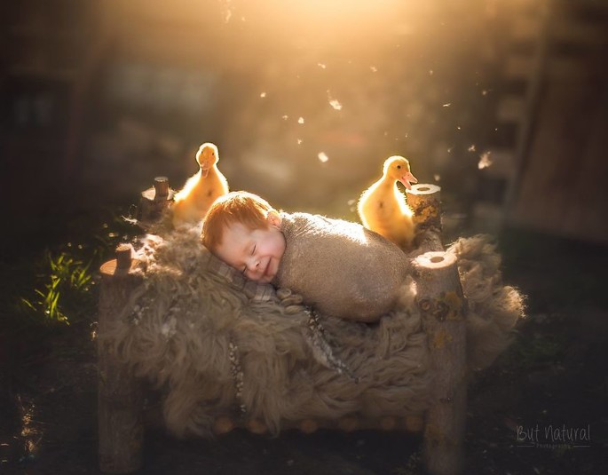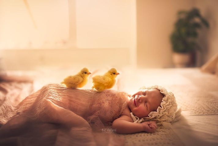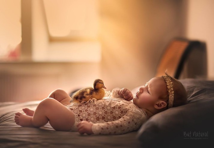 После потери любимца, женщина начала создавать сказочно-трогательные портреты младенцев с щенками, уточками и другими животными