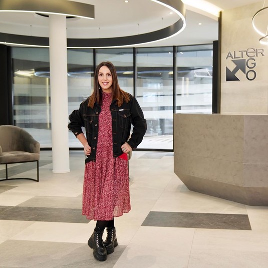 А также поднялась на высотку. За ее спиной открывает шикарный вид на столицу. В частности, видно стадион «Олимпийский» с его узнаваемой архитектурой.