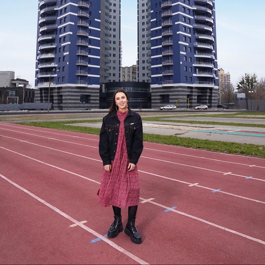 Певица прогулялась по территории одного из новых жилых комплексов в Киеве на Печерске. По фото видно, что исполнительница прогулялась по современному стадиону.