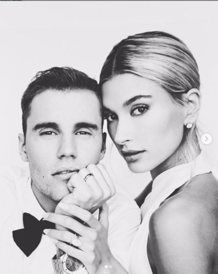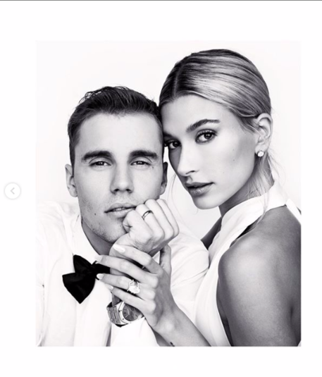 На черно-белых снимках изображена пара в традиционных нарядах. Джастин в белой рубашке с бабочкой, а Хейли в белоснежном платье.