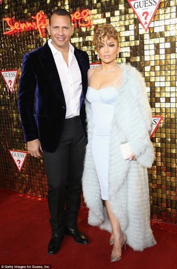 Стройная Лопес выбрала для мероприятия роскошное голубое платье и меховую накидку, подчеркнув образ экстравагантной прической и украшениями, а Родригес надел классический стильный костюм и белую рубашку.
