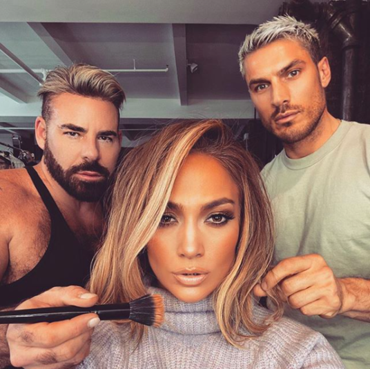 На снимке Лопес позирует в компании звездного визажиста Скотта Барнса и знаменитого стилиста-парикмахера Криса Эпплтона, который и стал автором новой стрижки звезды.