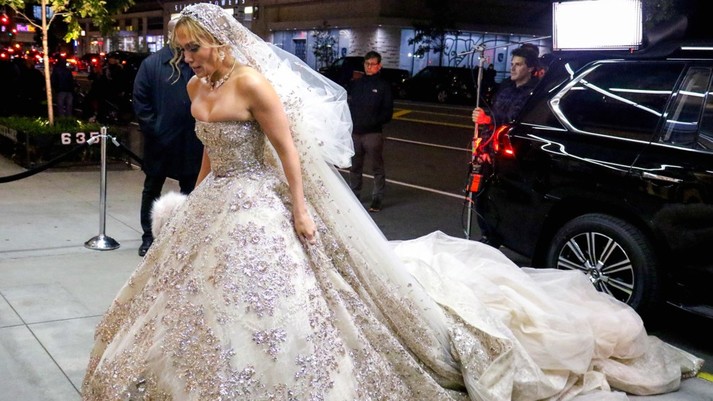 На выходных Дженнифер Лопес была замечена на Манхэттене в роскошном свадебном платье
