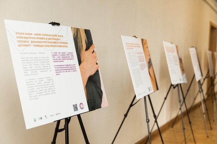 Выставка открылась в Кабинете Министров Украины. На стендах – 10 реальных историй женщин, которые нашли в себе силы противостоять насилию в семье.