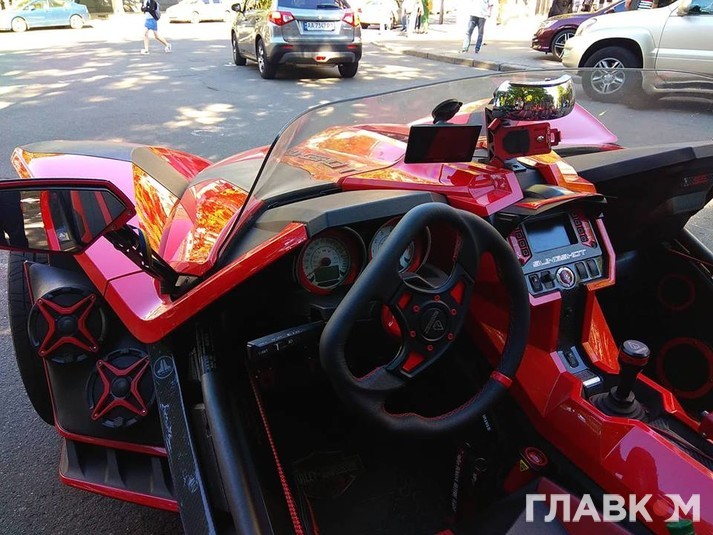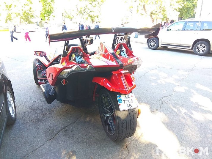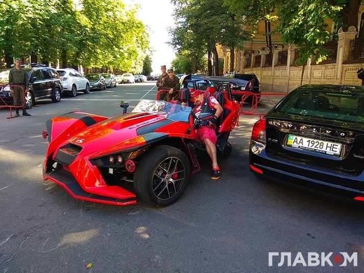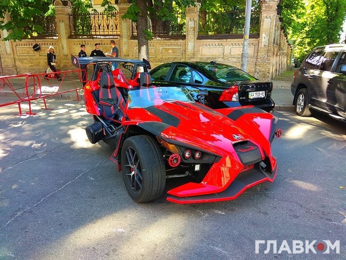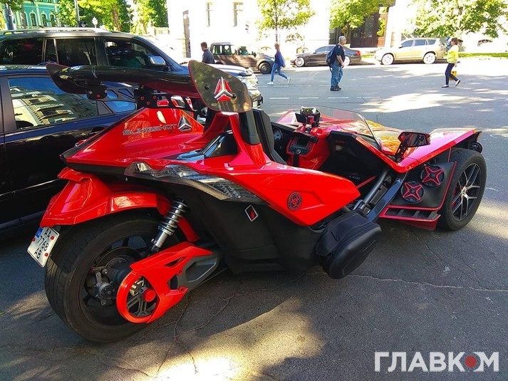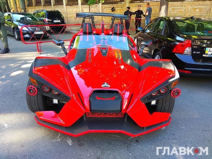Известный украинский художник Сергей Поярков, известный своими скандальными высказываниями и экстравагантной манерой одеваться, проехался по улице Банковая в Киеве на достаточно редком для нашей страны автомобиле Polaris Slingshot, пишет «Главком».