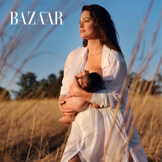 Эшли Грэм без стеснения покормила грудью ребенка во время съемки для модного глянца
