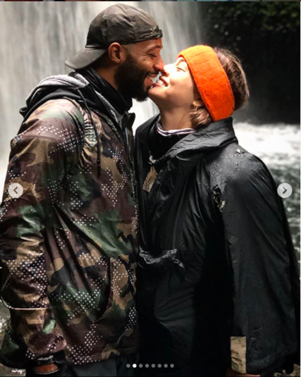На новом снимке модель, которая в настоящее время беременна первенцем, запечатлена целующей своего мужа.