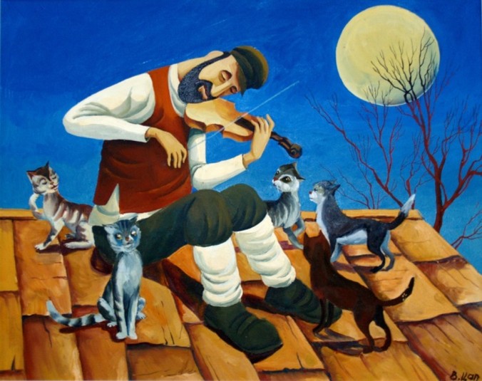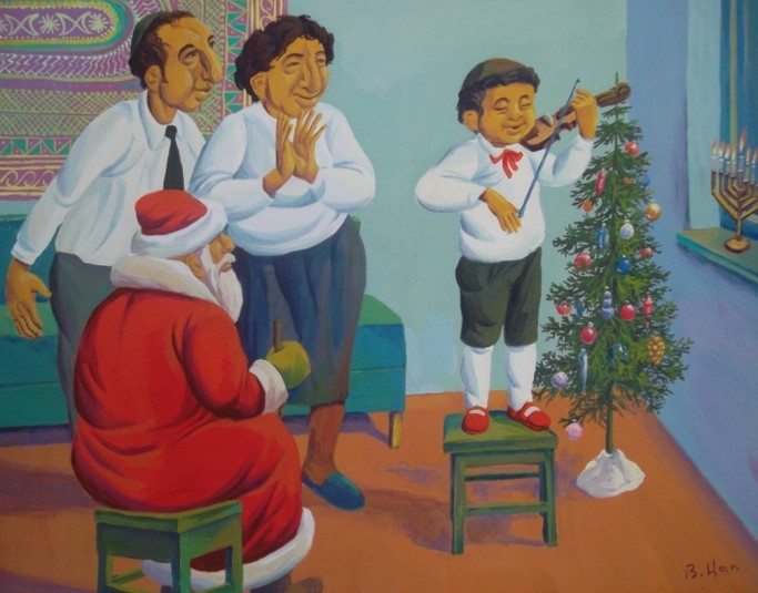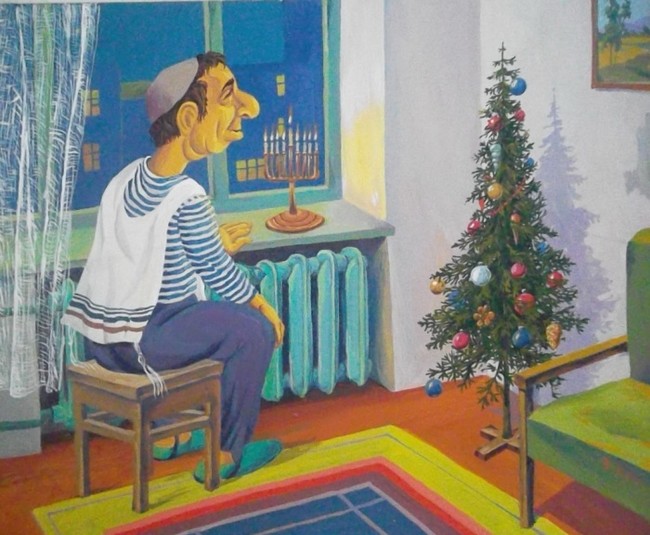 И судя по всему, современный художник из Биробиджана Владислав Цап знает об этом не понаслышке. Созданные им картины – вереница улыбок и горсть положительных эмоций. В них кипит жизнь лёгкая и простая, местами примитивная, но оттого более яркая, насыщенная и интересная, одним словом - настоящая. Благодаря гуаши и акрилу, которые он использует в своих работах, рождаются красочные сюжеты из еврейских будней.