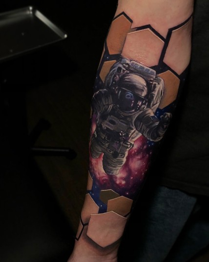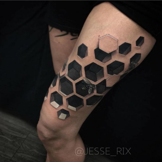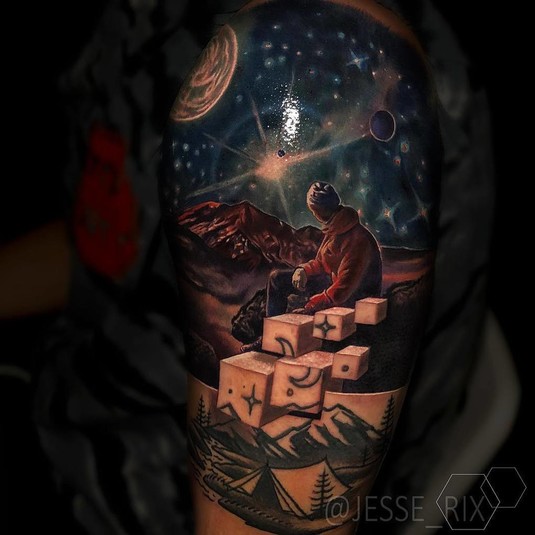 Работы Джесси Рикса вызывают восторг и напоминают фантастические миры, скрывающиеся под кожей. Такого эффекта художник добивается, используя геометрические фигуры и правильную игру света и тени. Джесси набивает татуировки с 2005 года и постоянно совершенствует свои навыки, создавая настоящие шедевры.
