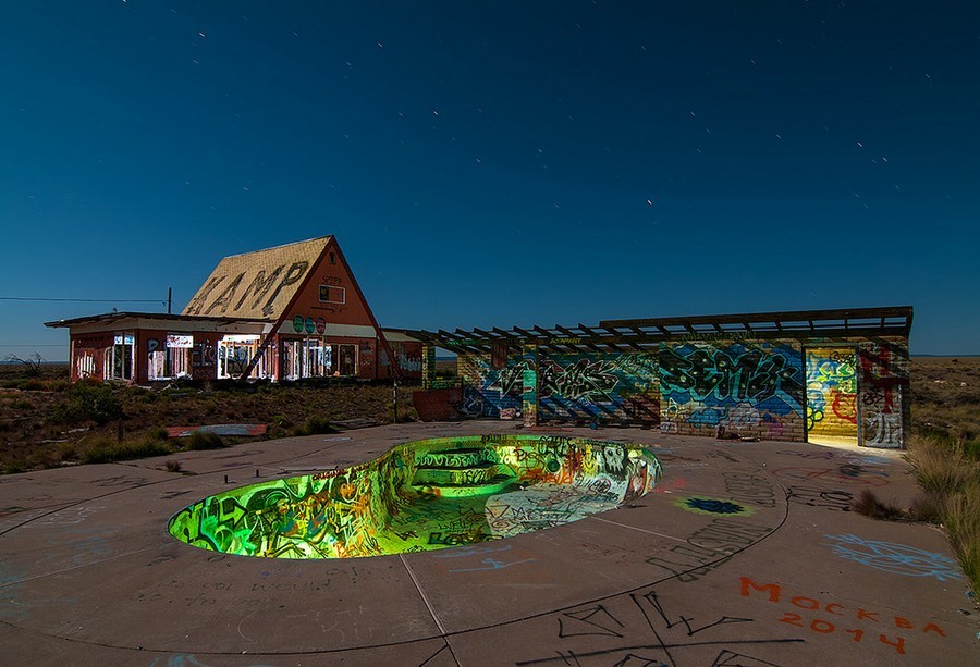 Прихватив фотокамеру и штатив, Ноэль Кернс отправился в дорожное путешествие по шоссе 66, через города-призраки американского Запада. Он согласовал свою поездку с календарём лунных фаз и посетил давно покинутые населённые пункты при свете полной луны.