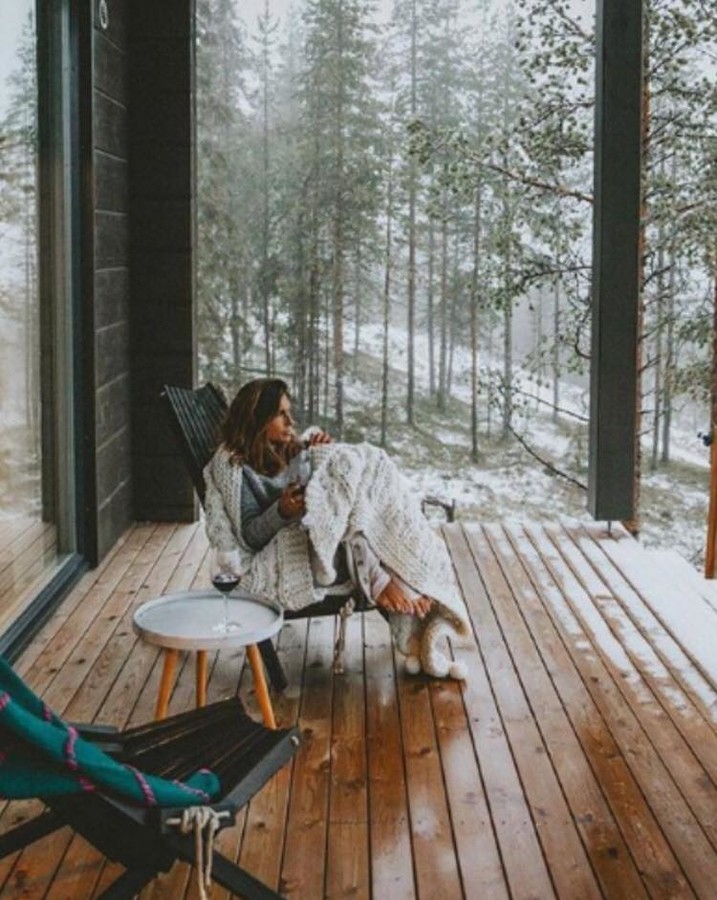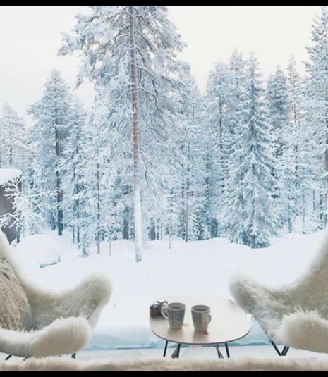 А все благодаря виду, который открывается из его огромных прозрачных окон и стен. Что может быть прекраснее, чем в удобном кресле с чашкой горячего чая любоваться красотой заснеженного леса!