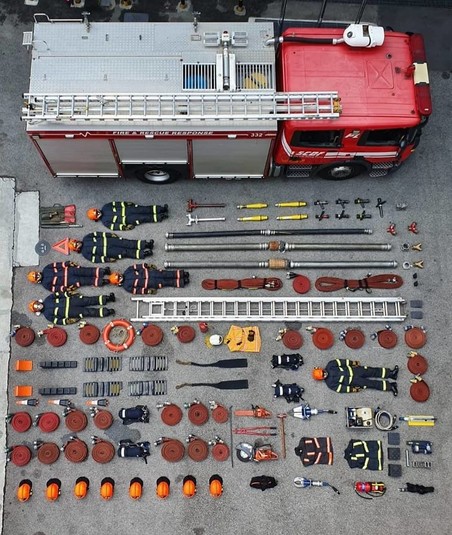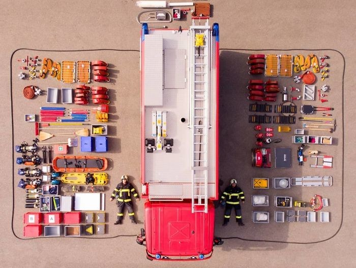 Спасатели, скорая помощь и полицейские фотографируются со своим инвентарем в необычном стиле