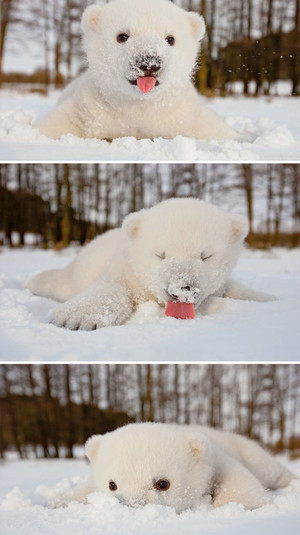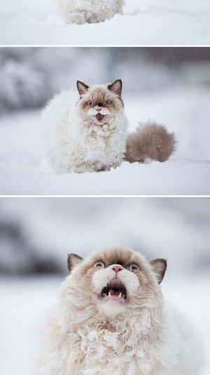 Широкую популярность в сети приобрели снимки, на которых показываются кошки, собаки, медведи и кролики, которые впервые в своей жизни видят снег. Составители подборки отмечают, что эмоции этих животных «в тысячу раз сильнее» тех, которые доводилось переживать человеку при первой встрече снега.
