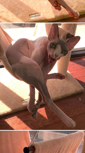 «Случайно застал сеанс общения своего сфинкса с потусторонними силами», «Я влюблен в своего кота», «У нашей кошки есть лицо на ее пятой точке», «Лапа моего кота очень похожа на человеческую руку», «Наш сфинкс так сидит, когда ему холодно», - комментирую фото пользователи сети.
