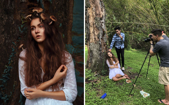 Фотограф Гео Леон как раз этим и занимается — парень показывает не только всю правду о своих работах, но и то, как съемочный процесс выглядит со стороны. И смотреть на создание фотографий ничуть не менее интересно, чем на сами снимки!