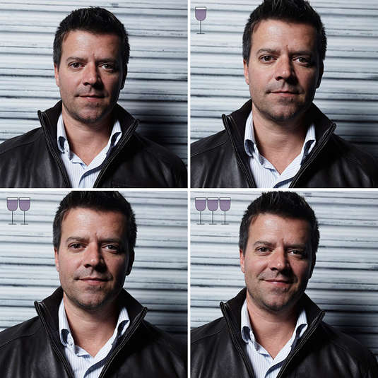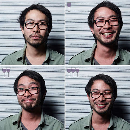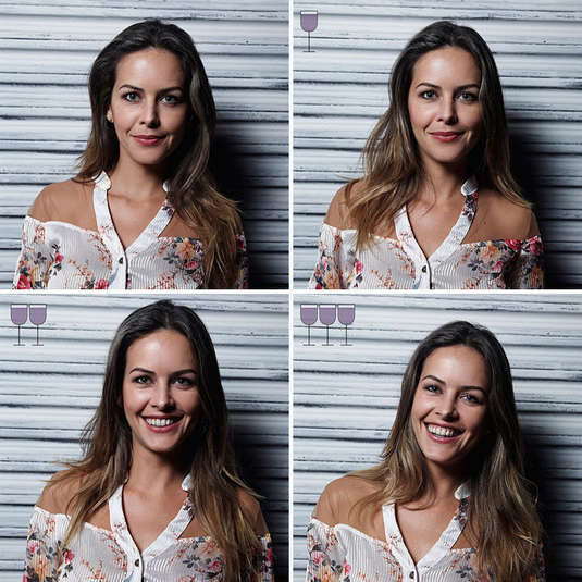 Маркос решил проверить это утверждение сделав фотосессию своих друзей после одного, двух и трех бокалов вина.