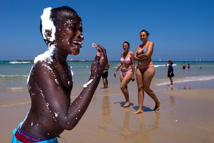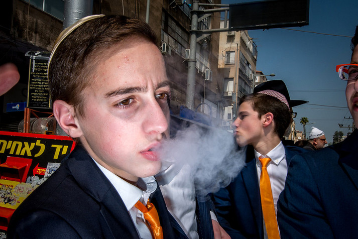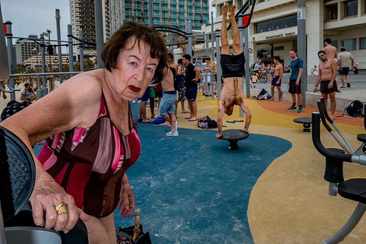 Танцовщицы в красных платьях, уличные костры, курящие ортодоксальные евреи, пляжные кадры – всё максимально близко и интимно. «Я хочу, чтобы зритель ощутил запах пота персонажа на снимке, почувствовал себя вовлечённым, будто он был там лично. Смело? Глупо? Грубо? Думаю, всего понемногу», – говорит фотограф.