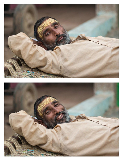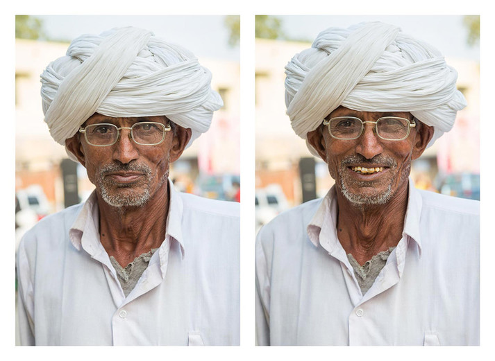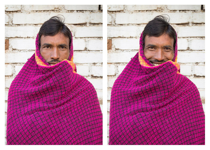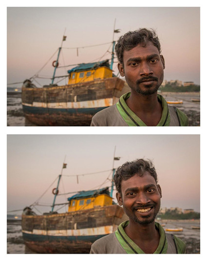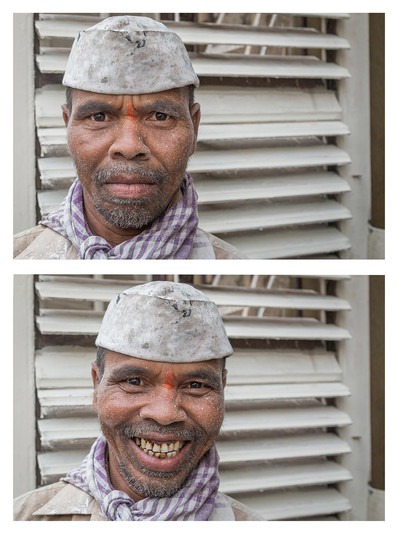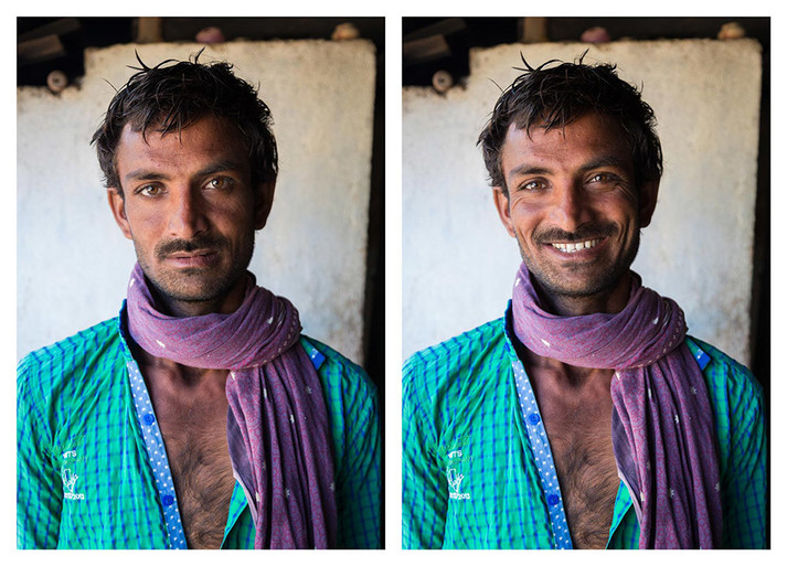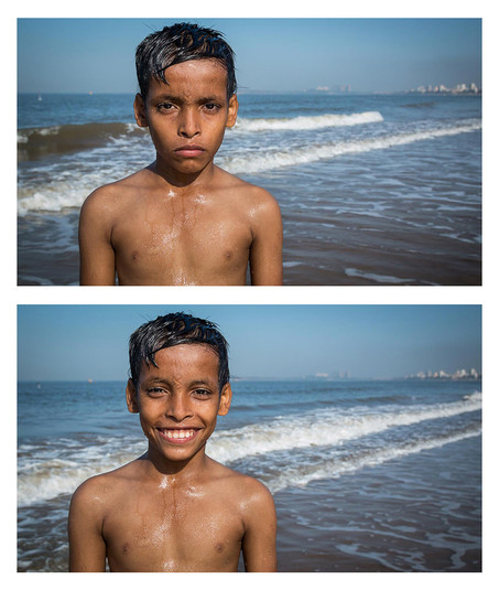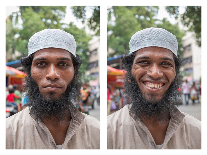 Он снимает исключительно портреты людей. Только в его портфолио по два снимка на каждую личность. Первое фото он делает с безэмоциональным выражением лица, а для второго просит улыбнуться. В результате получаются абсолютно разные снимки у одного и того же человека. Фотограф хотел показать какое влияние на настроение и общее впечатление от человека создает улыбка.