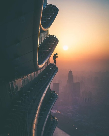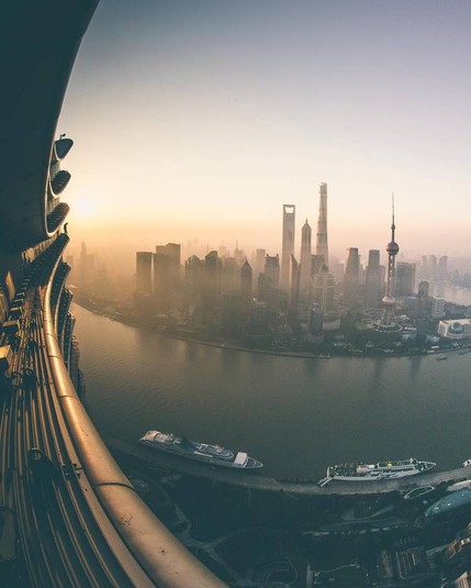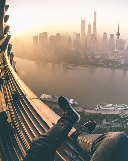 Фотограф, которого совершенно не страшит высота, заполнил свой Instagram умопомрачительными видами Шанхая с вершин его небоскрёбов.