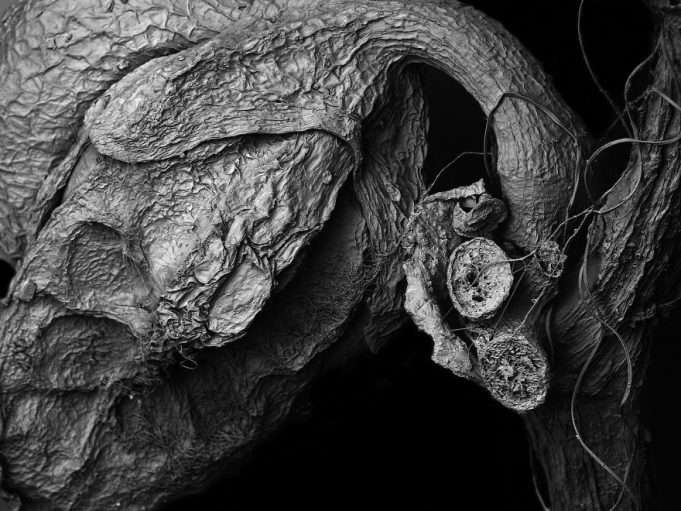 С созданием этой серии «Высохшие растения» фотограф Томойя Матсуура использовал сканирующий электронный микроскоп для фотографирования растений. Этот микроскоп имеет более высокое разрешение, чем оптический микроскоп, и поэтому с его помощью можно захватывать чрезвычайно тонкие и точные структуры форм, которые не могут быть замечены невооруженным глазом.