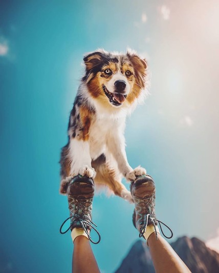 Поэтому неудивительно, что в объективе девушки пес часто становится главным героем и покорителем вершин.