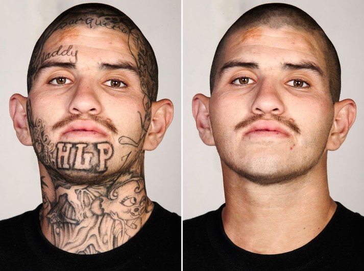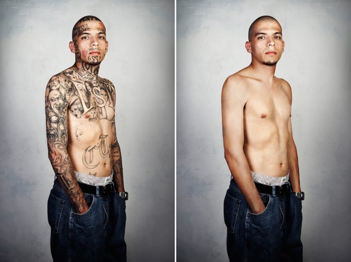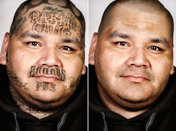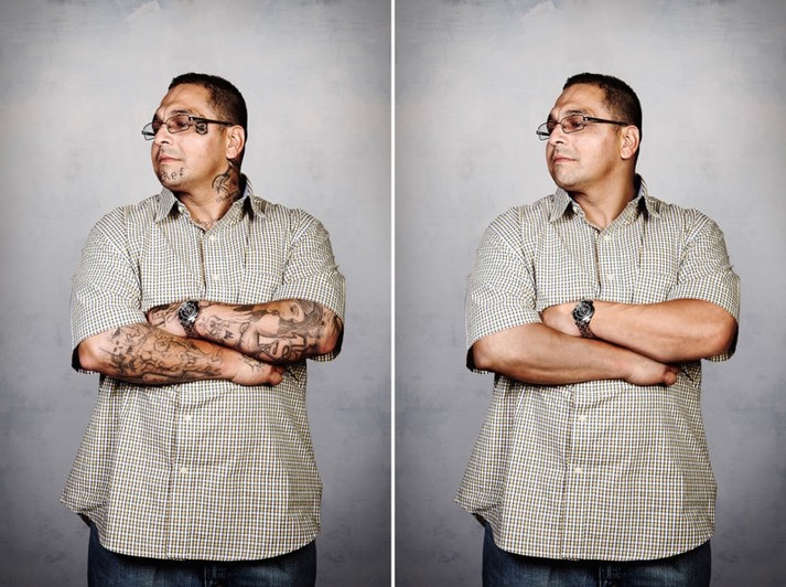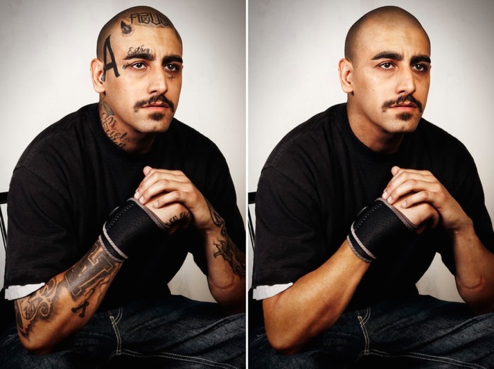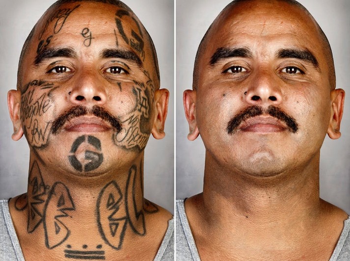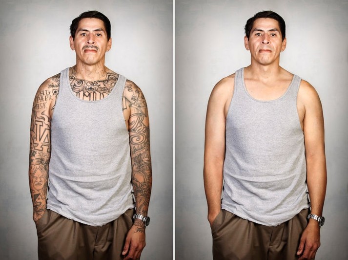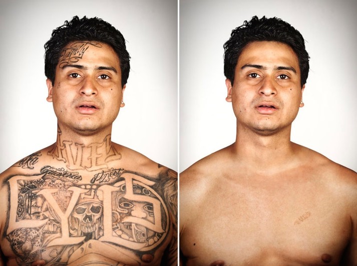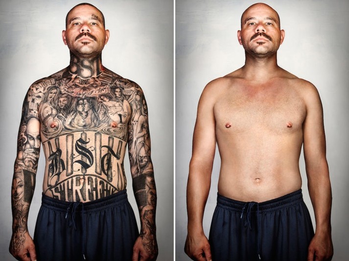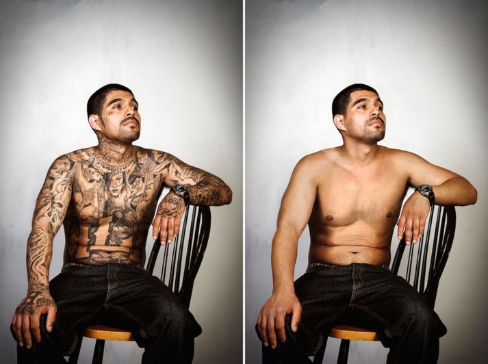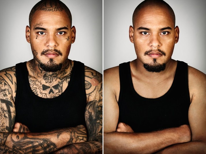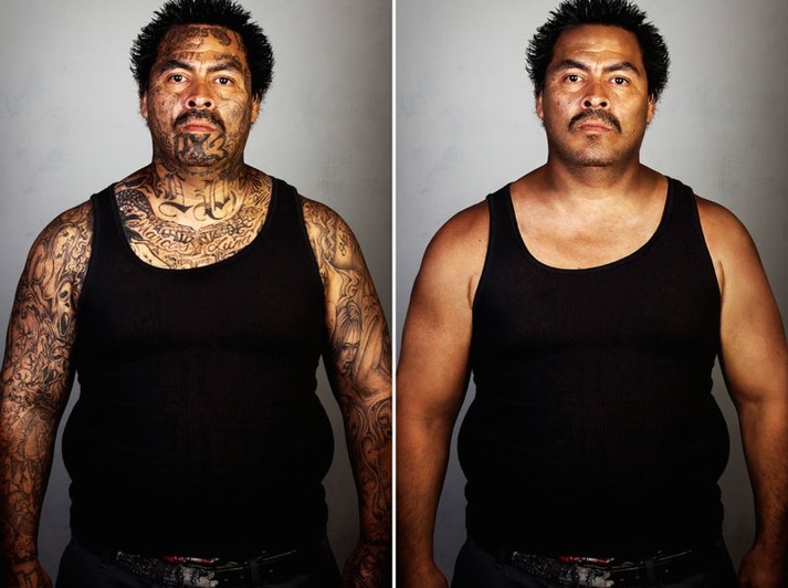 Фотограф сравнил портреты бывших членов банд с татуировками и без них