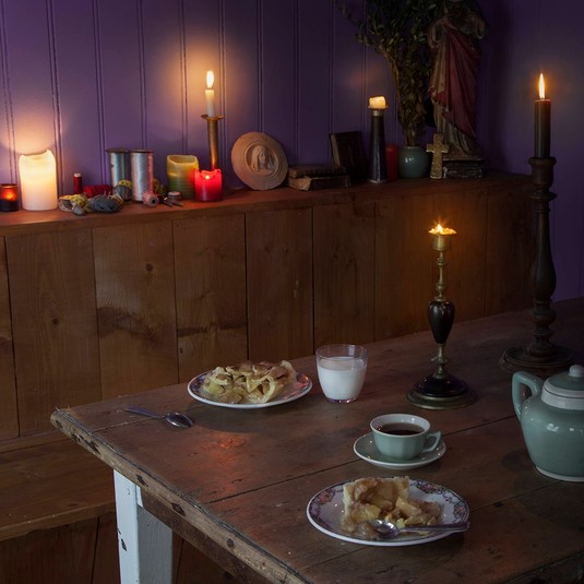 Для Шарля Ру само приготовление еды, которую он снимал, становилось отдельным важным процессом. Создание каждой фотографии начиналось не с продумывания композиции, а с воспоминаний — какие детали описывал автор, как выглядело блюдо, что было вокруг. Весь реквизит для съемки фотограф собирал сам — искал в антикварных магазинах и секонд-хендах.