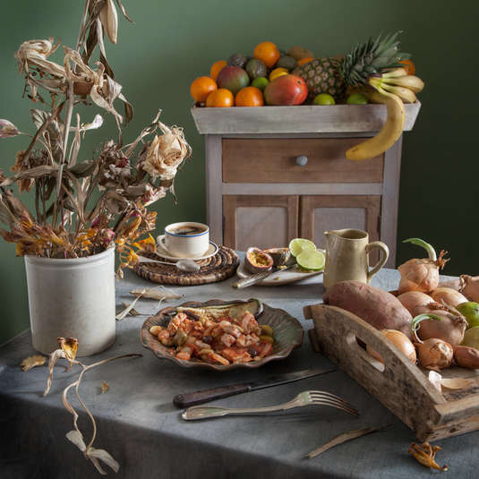 Для Шарля Ру само приготовление еды, которую он снимал, становилось отдельным важным процессом. Создание каждой фотографии начиналось не с продумывания композиции, а с воспоминаний — какие детали описывал автор, как выглядело блюдо, что было вокруг. Весь реквизит для съемки фотограф собирал сам — искал в антикварных магазинах и секонд-хендах.