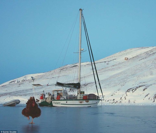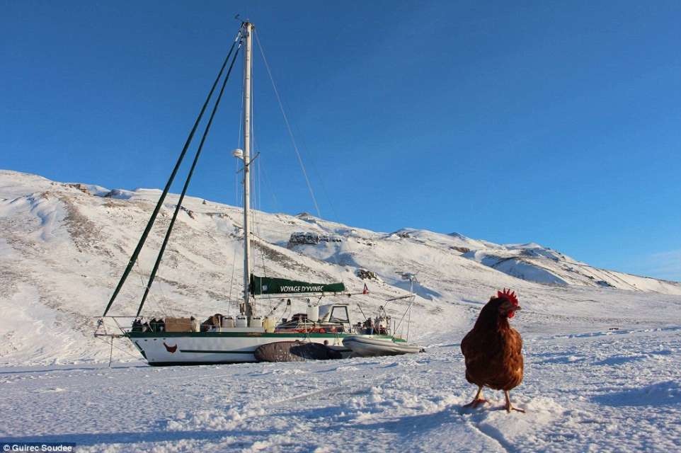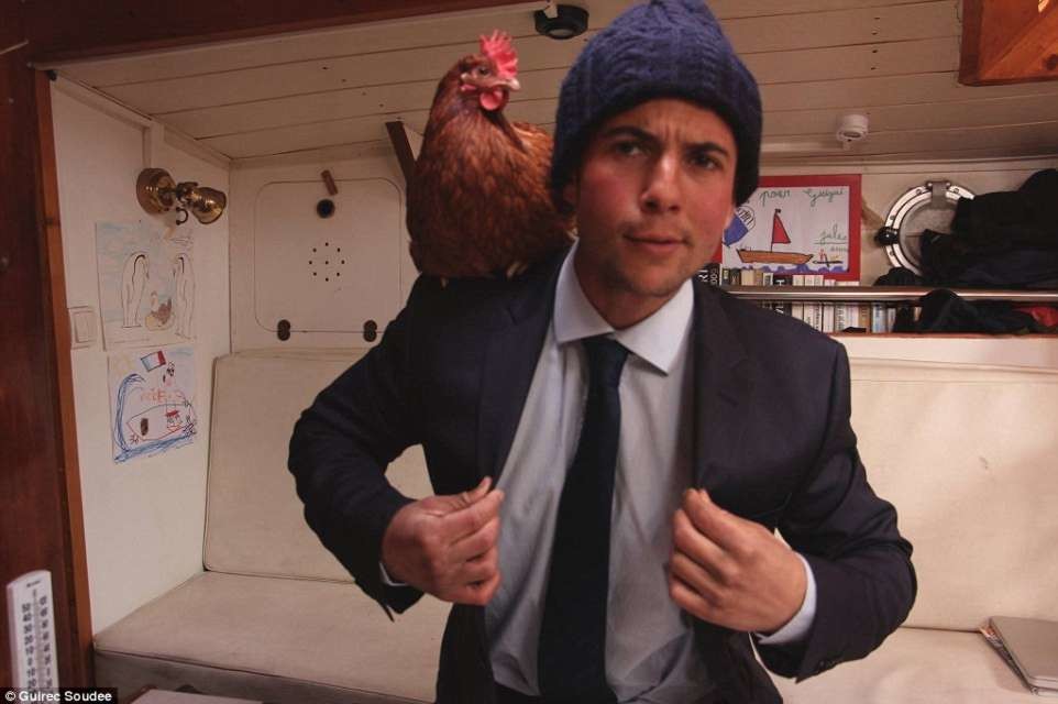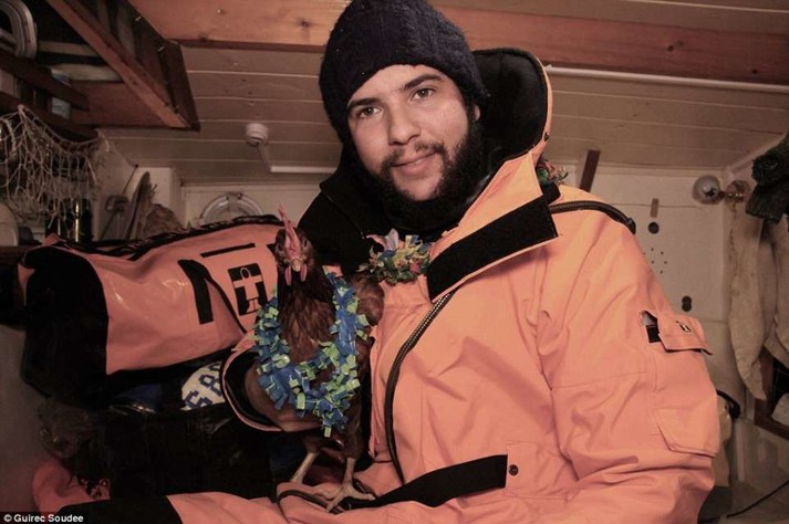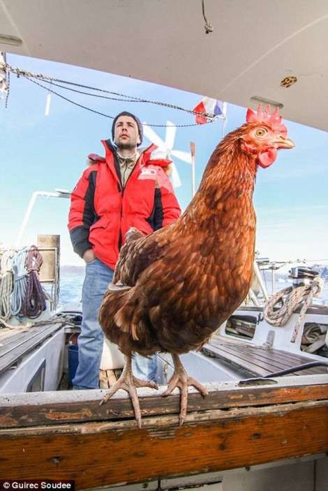 Что ни говорите, но французский моряк Гирек Суди (Guirec Soudee) и его пернатая подруга, курица по имени Моник, довольно странная парочка.