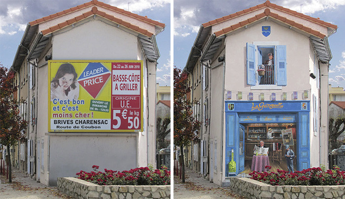 Французский художник Патрик Коммеси и его команда художников-монументалистов превращают унылые и скучные фасады пригорода Франции в ярких сцены, полные жизни.