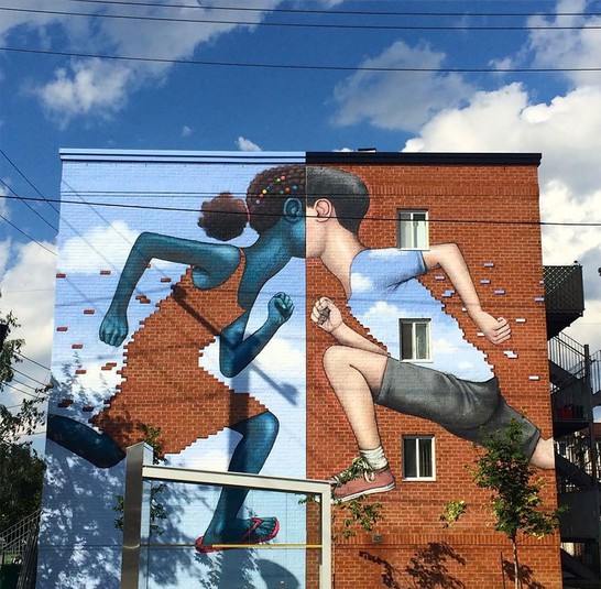 Французский уличный художник Жюльен Малланд создает настоящие шедевры, превращая скучные здания в яркое произведение искусства.