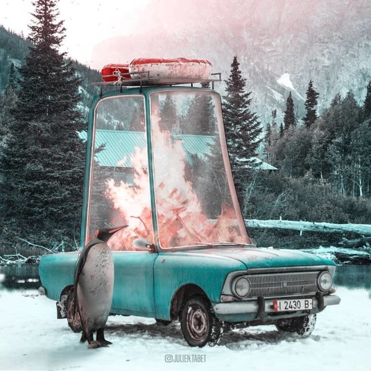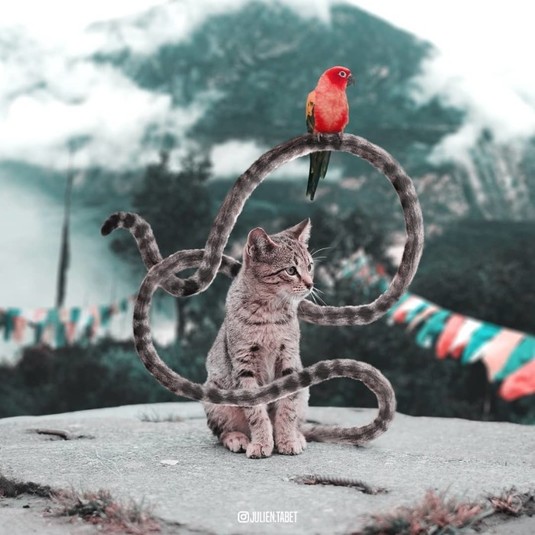 Жульен, как и любой художник, очень любит рисовать, придумывая что-то новое и необычное. Но вот только вместо традиционных кистей, красок и холста он использует фотографии, которые, обрабатывая в Photoshop, создаёт целые волшебные миры с гибридными животными.