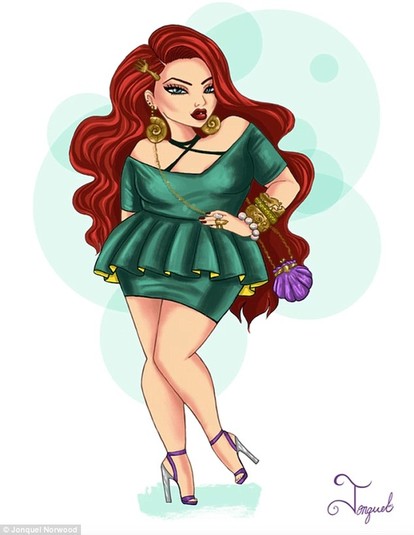В последнее время разные художники предлагают собственное прочтение давно знакомых образов принцесс из мультфильмов, и иногда их подход очень оригинален. Модный иллюстратор и художница из Нью-Йорка Джонкел Норвуд решила использовать эту тенденцию и нарисовать своих любимых героинь в современном ключе и с роскошными формами.