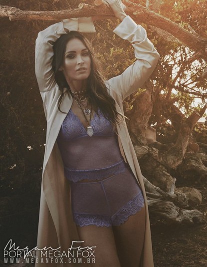 Голливудская звезда для нижнего белья выбрала соблазнительное кружево, которое придает образам игривости и сексуальности. Для рекламы Меган Фокс продемонстрировала нижнее белье в трех цветах: винного, черного и синего с черным.
