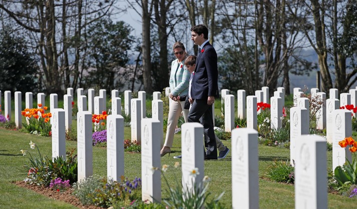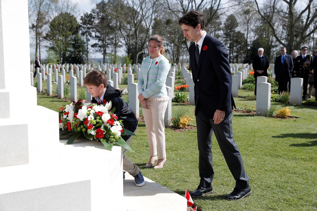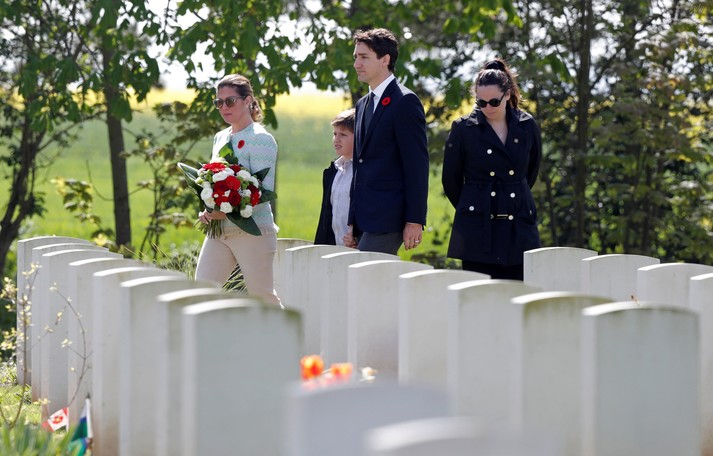 Премьер-министр Канады Джастин Трюдо вместе с супругой Софи Грегуар и 9-летним сыном Ксавьером прибыли во Францию на Канадское военное кладбище в Бени-сюр-Мере, где почтили память погибшего во время Второй мировой войны солдата Грегуара.