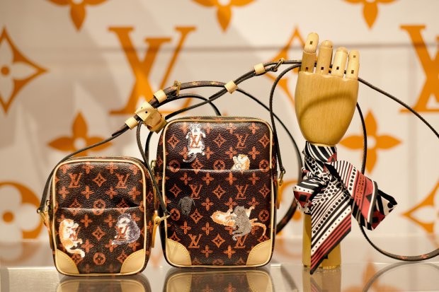 Вторая составляющая коллекции - классическая монограмма Louis Vuitton, которая в паре с озорными котами просто заиграла новыми красками.