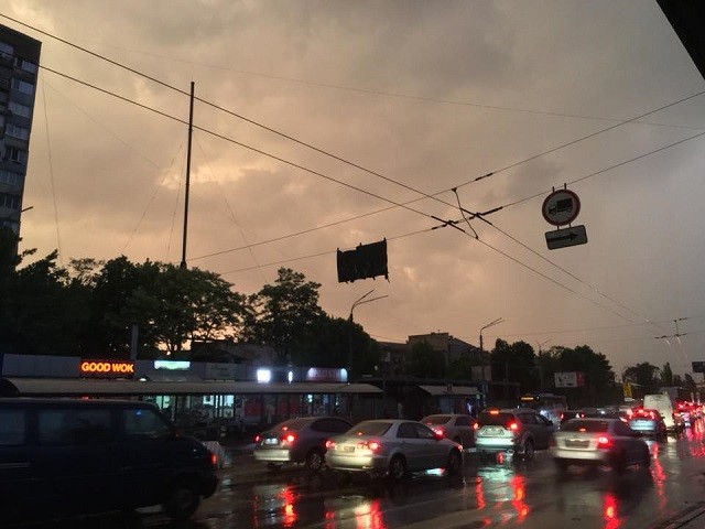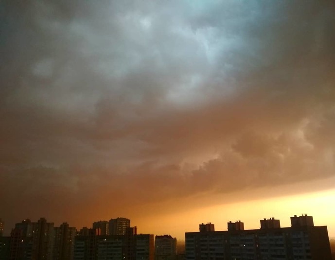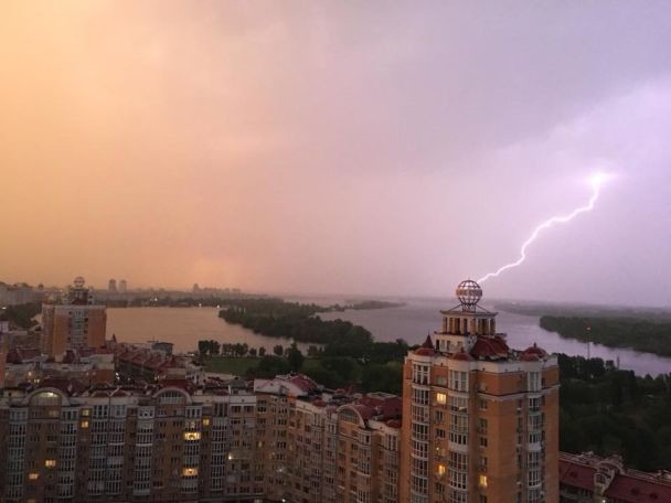 Некоторым киевлянам удалось запечатлеть яркие кадры природного явления. Пользователи начали выкладывать впечатляющие фотографии в соцсети, как только небо затянуло темными облаками.
