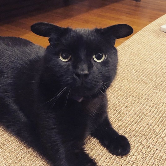 В социальных сетях появилась новая пушистая звезда — «грустный» черный кот с необычными ушами.