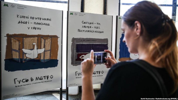 В столичном метрополитене решили популяризировать правила поведения в подземке. В этом им поможет Гусь – знаменитый интернет-персонаж, созданный львовской художницей Надеждой «Надьожна» Кушнир. В рамках социального проекта в метро презентовали девять постеров, на которых ироничный персонаж в свойственной ему манере «объясняет» официальные и «народные» правила, от которых зависит комфорт и безопасность поездки.