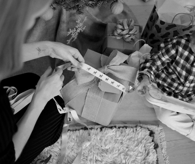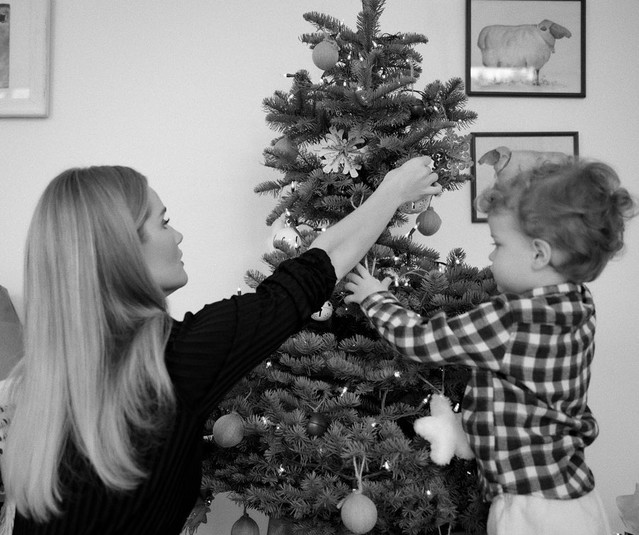 Звезда опубликовала несколько кадров с сыном, где они вешают игрушки на елку и заворачивают праздничные подарки.