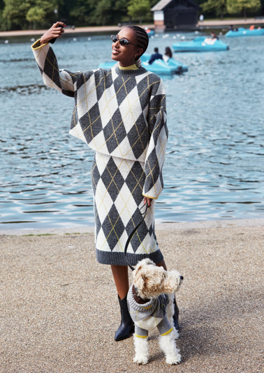 Цветовая палитра коллекции Pringle of Scotland x H&M – осенняя смесь горчичного, голубовато-серого и коричневого с неожиданными вкраплениями кислотно-желтого.